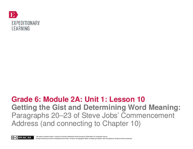 This Getting the Gist and Determining Word Meaning: Paragraphs 20–23 of Steve Jobs’ Commencement Address (and connecting to Chapter 10) lesson plan also includes: