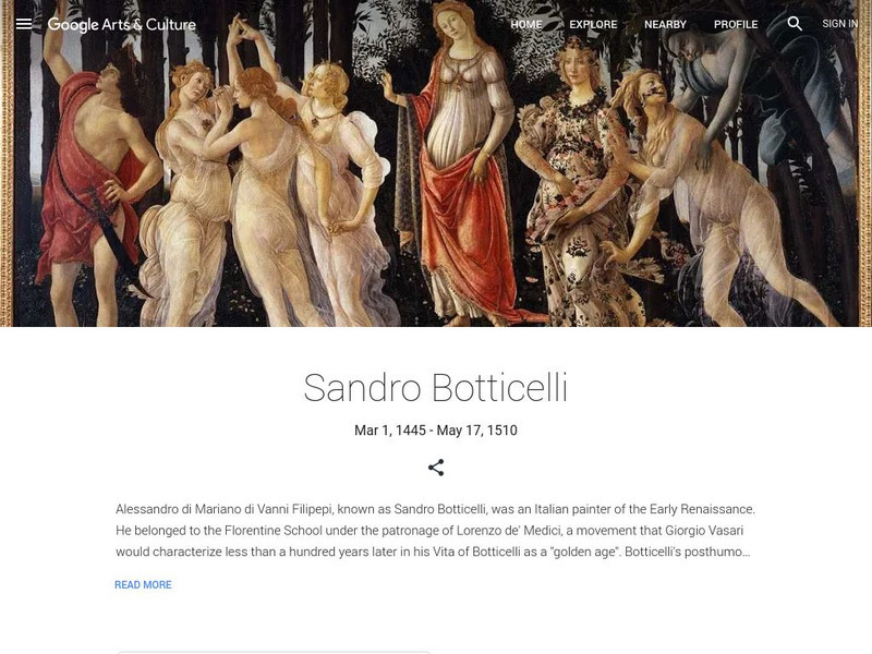 This visual website from Google Cultural Institute shares background information and photos about Sandro Botticelli.