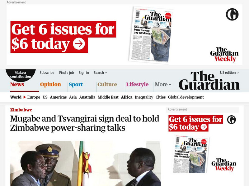 President Mugabe of Zimbabwe agrees to hold talks with the opposition leader to discuss sharing power. Mugabe was criticized for what was perceived by many as an undemocratic election process that returned him to power. [Date of Article: 21 July 2008]