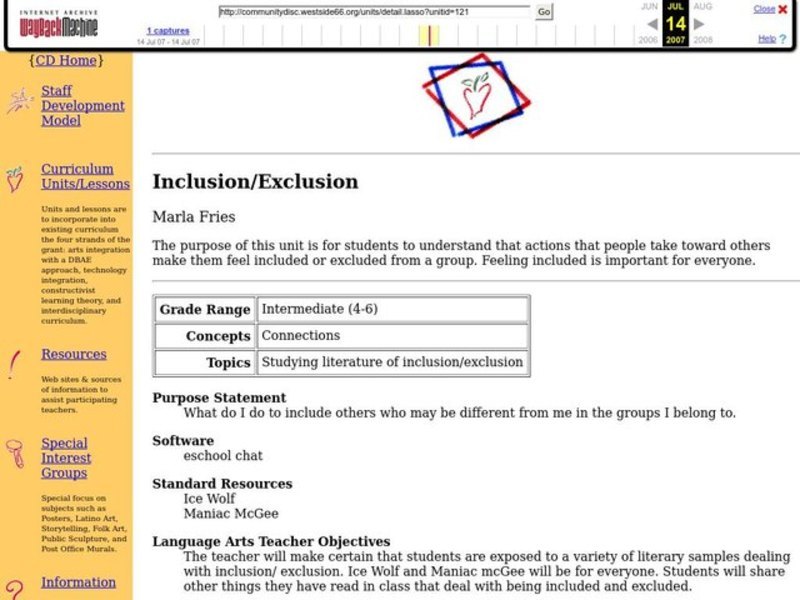 Students explore the time and culture of the Inuit people. They view the play Ice Wolf and discuss its importance. Students discuss the feeling of being included and excluded. They write brief stories about a real experience or witnessed. Additional cross curriculum activities are listed.