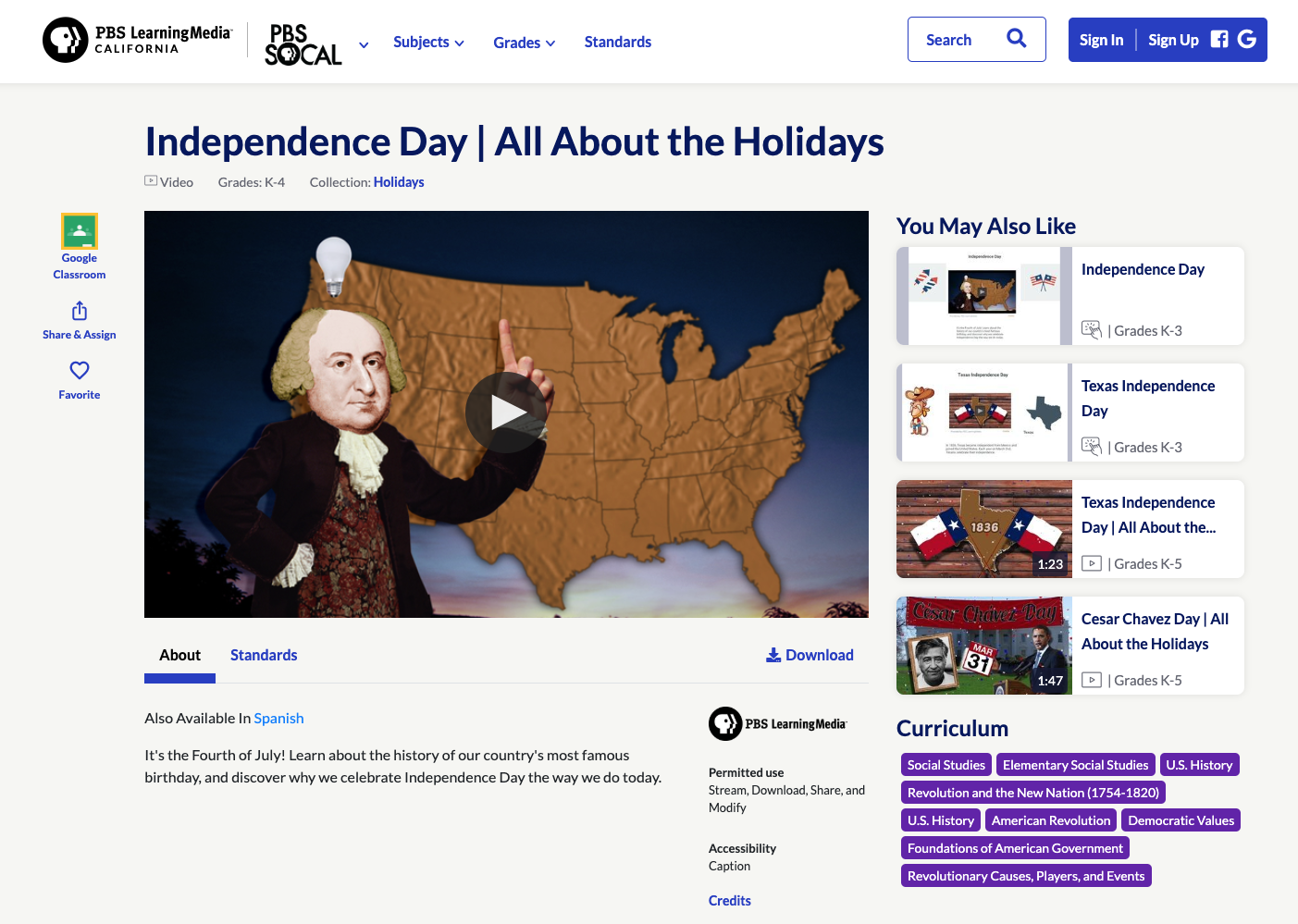 - Show the video as an introduction to a lesson on Independence Day; use the question at the end of the video as a warm-up writing prompt