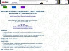 Pupils identify careers that are nontraditional for their gender. In this occupations lesson plan students research careers that are nontraditional for their gender and conduct interviews with individuals employed in nontraditional fields.