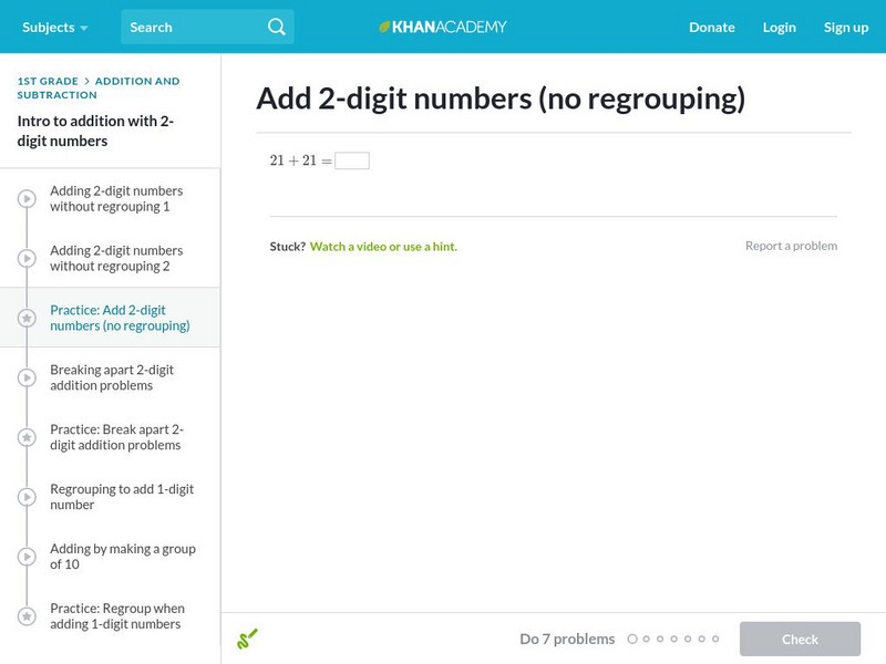 Practice solving problems like 24 + 45. Students receive immediate feedback and have the opportunity to try questions repeatedly, watch a video or receive hints.