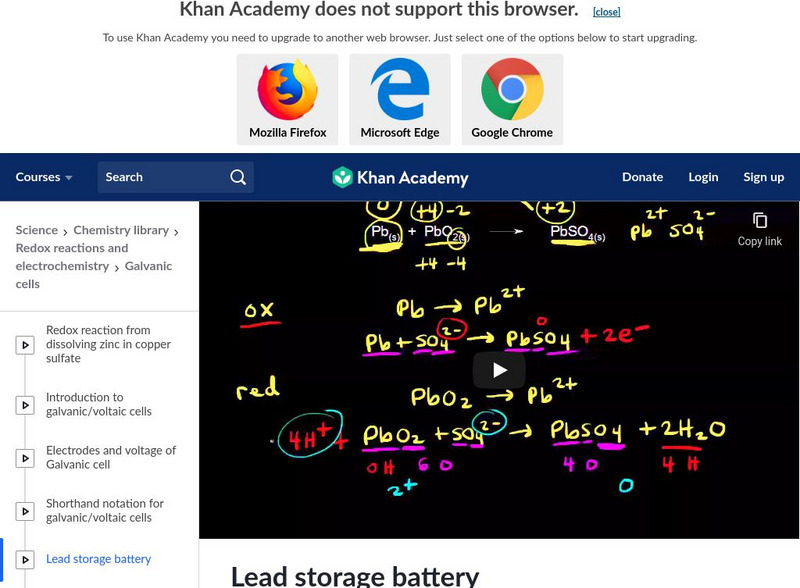 An overview of how to balance the redox reaction (in acid) that occurs in a lead storage battery. [9:03]