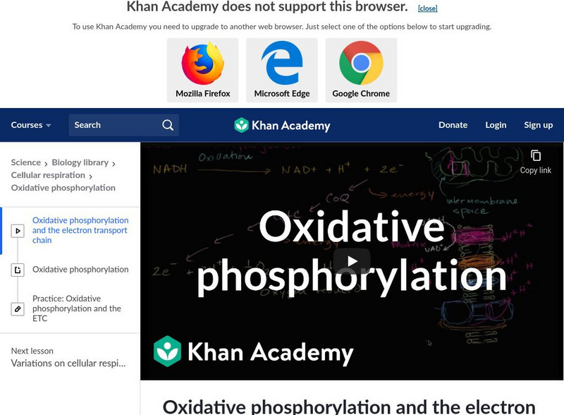 Video lecture gives students information about how oxidation of co-enzymes can lead to the production of ATP through oxidative phosphorylation. [15:36]