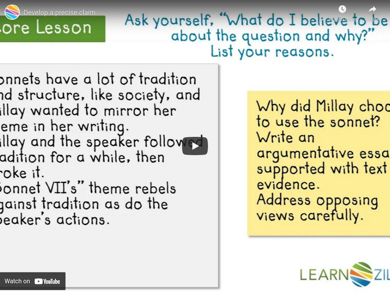 In this lesson, you will learn how to generate a precise claim by analyzing your text and notes for reasons and evidence. [7:29]