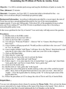 Students calculate park acreage and map the distribution of parks in Austin, TX using GIS. Students use a specific website to find the information.