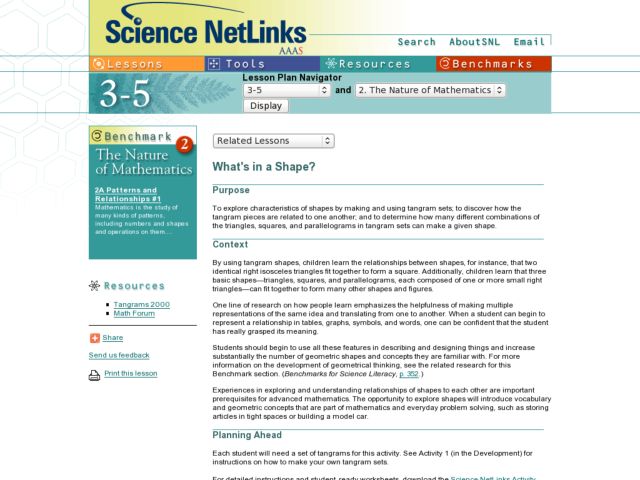 Students explore shapes by making and using tangram sets. They discover how tangram pieces are related to one another and determine how many different combinations of triangles, squares, and parallelograms in tangram sets can make a given shape.