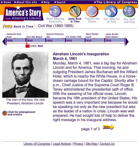 Review the events of the day when Abraham Lincoln was sworn into the office as President and read portions of his first inaugural address.