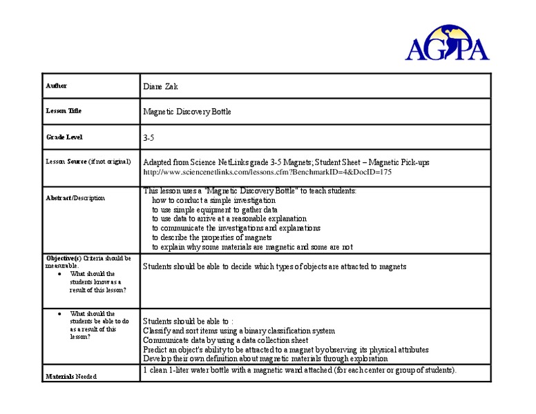 Students examine how to conduct simple investigations and use simple equipment to gather data. In this magnet instructional activity students decide what types of objects are attracted to magnets.