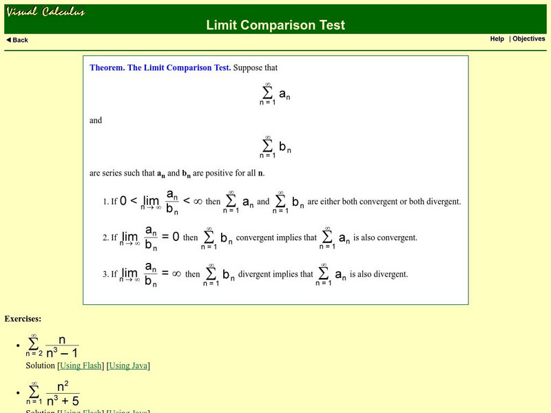 Visual Calculus offers a discussion and exercises regarding the limit comparison test.