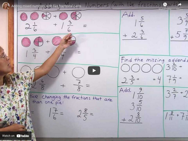 Shows how to add mixed numbers when the fractional parts have the same denominator. [8:48]