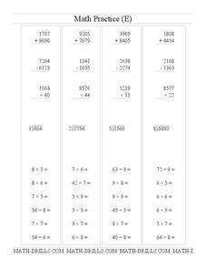 In this math operations instructional activity, students complete a set of 40 problems, adding, subtracting, multiplying and dividing. An answer key and website reference for additional resources are given.