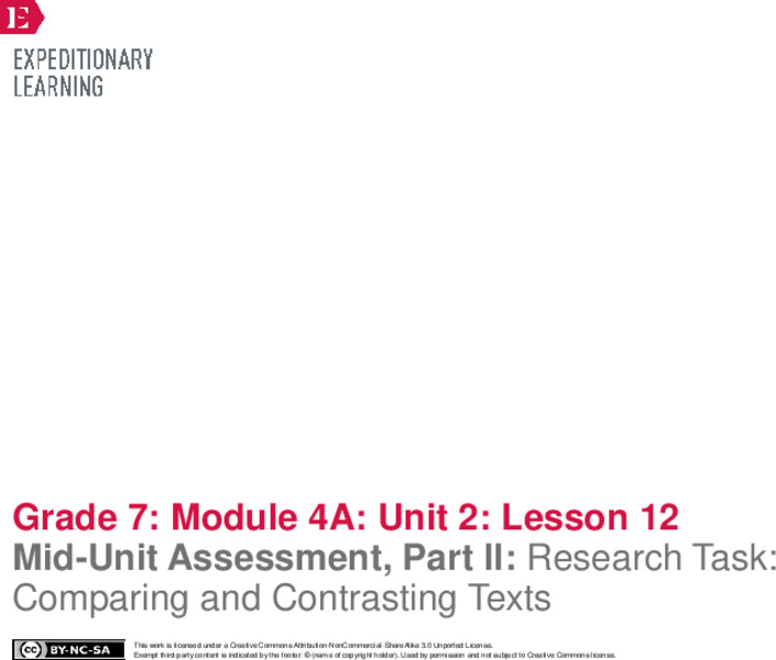 - Lesson 12 of 19 from the consecutive Grade 7 ELA Module 4A, Unit 2 series