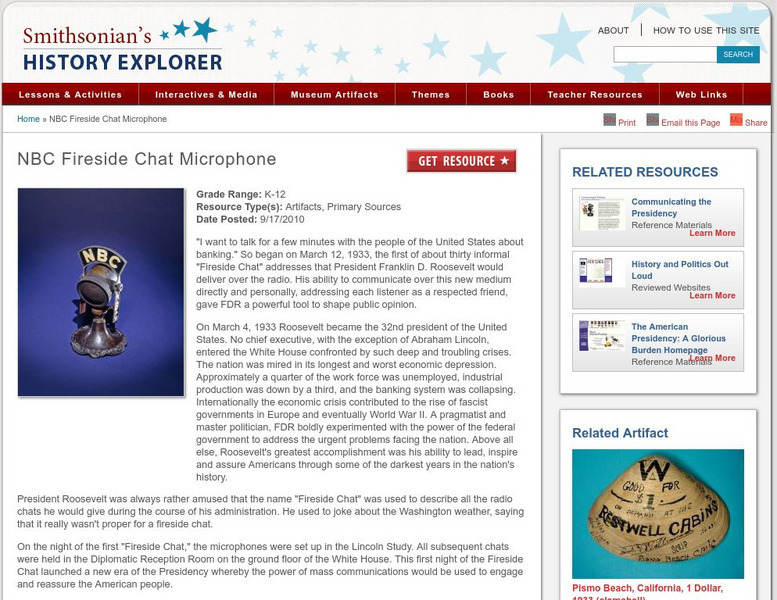 Read about the first of FDR's "Fireside Chats" that he delivered over the radio with an image of the microphone used.