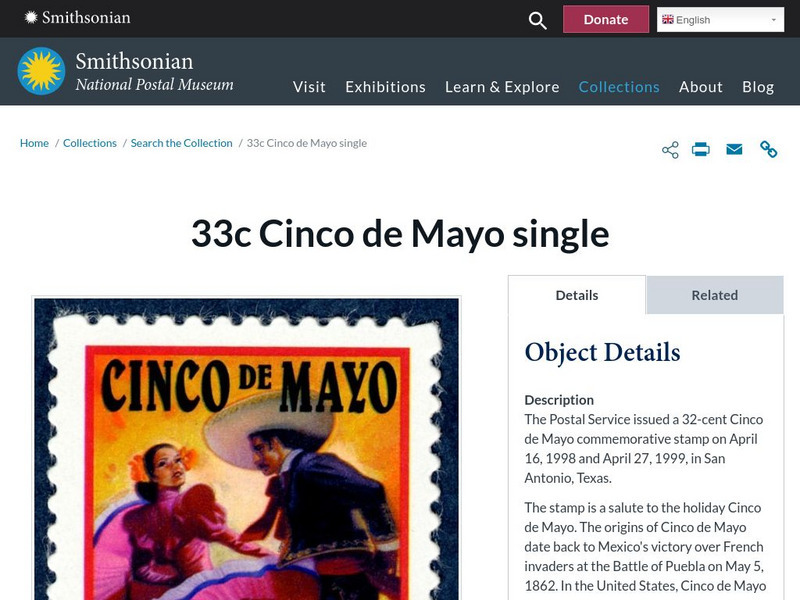 Learn about the origins of Cinco de Mayo from this captioned exhibit of a stamp issued to commemorate the holiday.