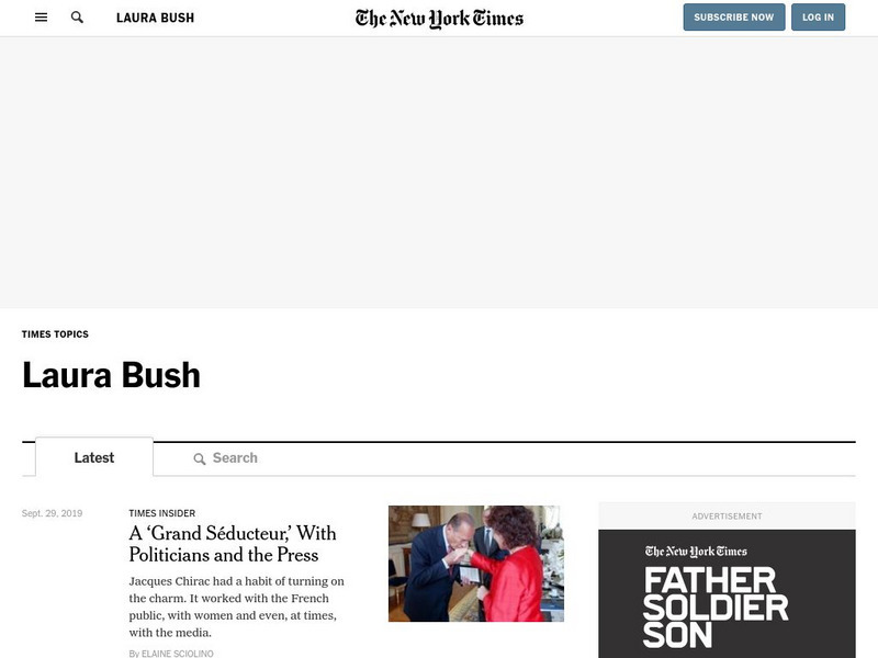 [Free Registration/Login Required] This page, updated daily, has numerous news articles about First Lady Laura Bush.