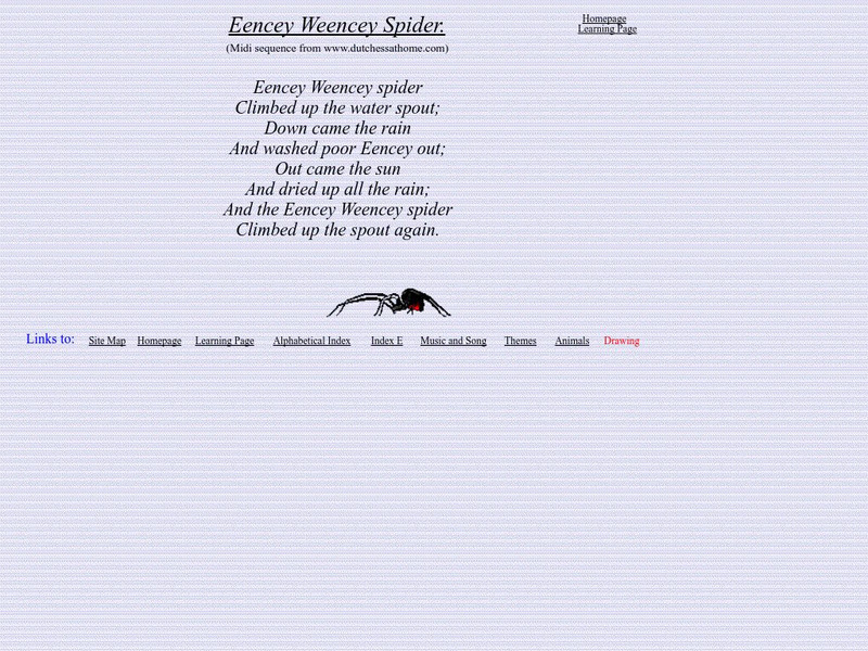 The nursery rhyme, Eencey, Weencey Spider is displayed. Students can listen to the nursery rhyme being sung along to music.