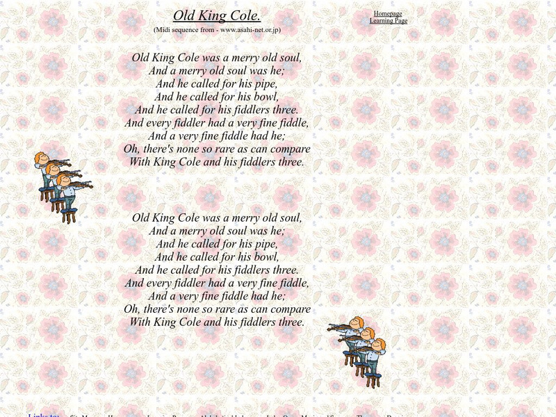 Students can sing along or listen to the nursery rhyme, "Old King Cole" on this site.