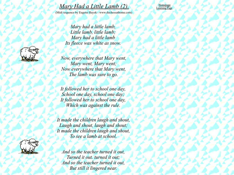On this site, students can sing along or listen to the nursery rhyme, "Mary Had a Little Lamb."