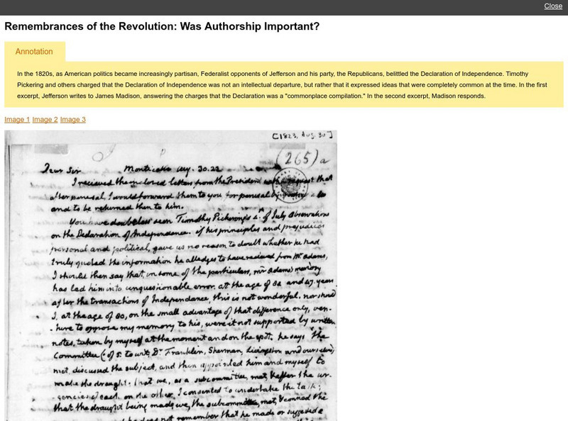 View copies of three original documents that are letters between political leaders concerning the Declaration of Independence.