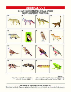 In this problem solving worksheet, students analyze a row of pictures of various animals to determine which creature is different from the others pictured.