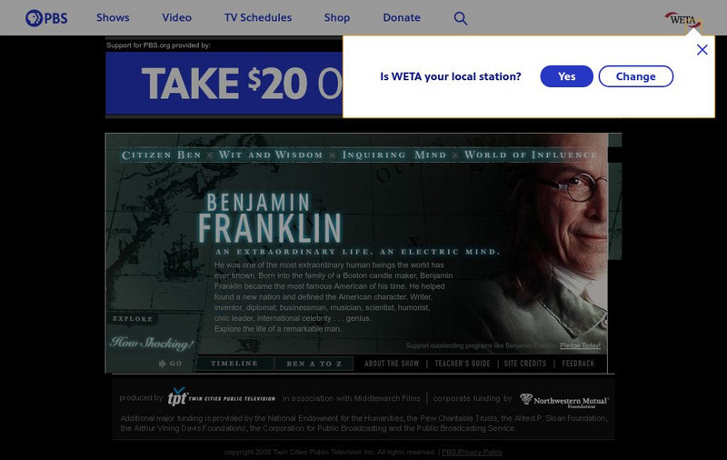 To appreciate the contributions Benjamin Franklin made both to his own time and to ours, it is necessary to see all aspects of his public life, not just his role as a revolutionary, a diplomat, or a scientist. Each of the four sections of this site highlights five different aspects of Franklin's life, from firefighter to agricultural innovator as well as from founding father to inventor. An a-to-z list points out the various roles Ben Franklin played in his life. Use the timeline to gain further enlightenment into Franklin's life and accomplishments, useful resource for understanding the variety of Franklin's skills and accomplishments in one glance. Use the timeline to gain further enlightenment into Franklin's life and accomplishments.