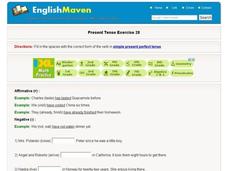 In this simple present perfect tense worksheet, students fill in the blanks with the correct form of the verb in the simple present perfect tense. Students complete 14 sentences.