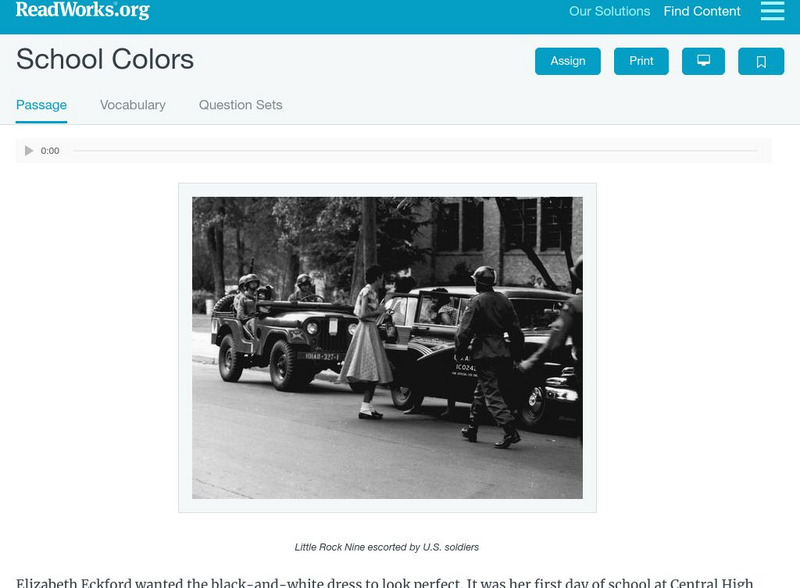 [Free Registration/Login Required] An informational text about desegregation and the experiences of the Little Rock Nine. A question sheet is available to help students build skills in reading comprehension.