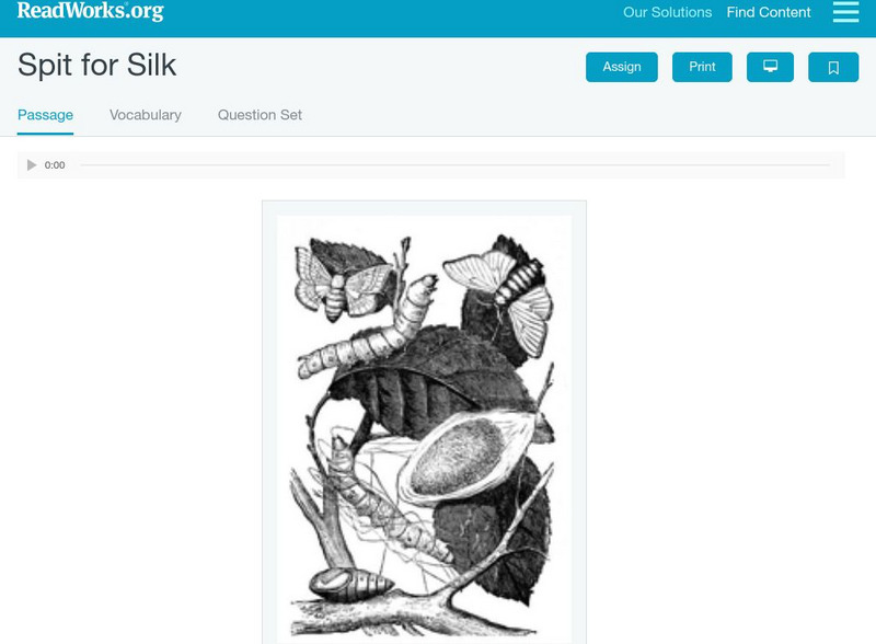 [Free Registration/Login Required] Students read about silkworms and how silk is made. A question sheet is available to help students build skills in reading comprehension.