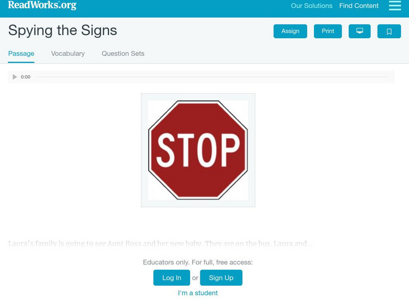 [Free Registration/Login Required] A literary text about a brother and sister playing I-Spy with street signs. A question sheet is available to help students build skills in reading comprehension.