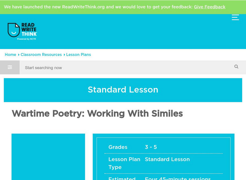 Contains plans for four lessons that use photos and depictions of World War II to inspire similes to use in poems. In addition to objectives and standards, this instructional plan contains links to sites used in the lessons as well as assessment and reflection activities.