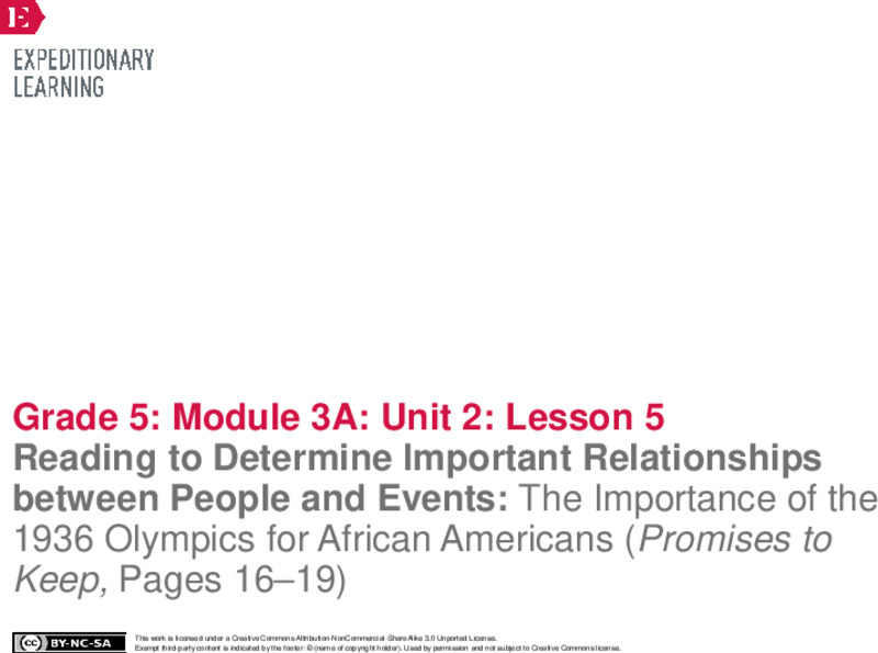 This Reading to Determine Important Relationships between People and Events: The Importance of the 1936 Olympics for African Americans (Promises to Keep, Pages 16–19) lesson plan also includes: