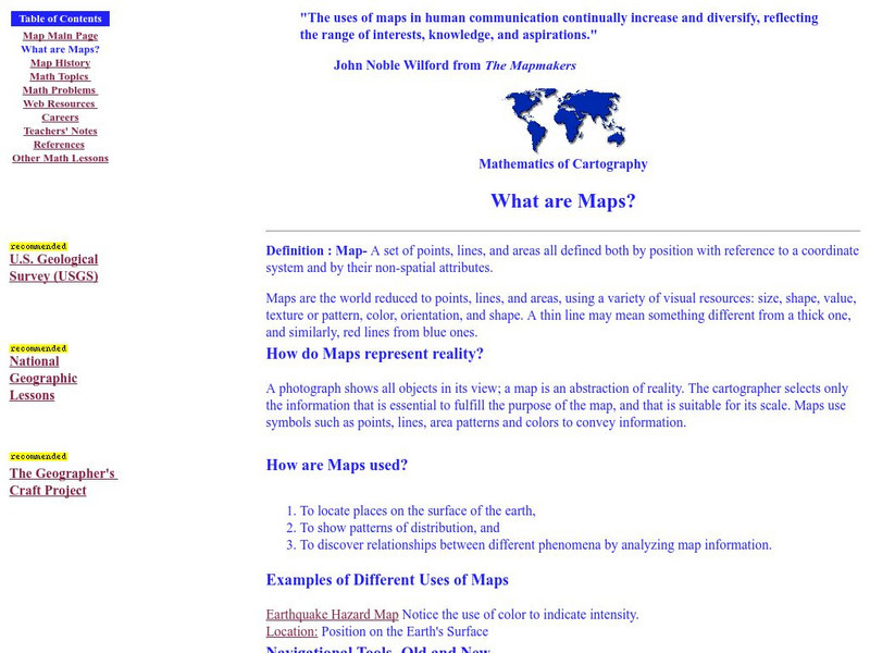 Defines what maps are and provides illustrations and related links to a site devoted to cartography.