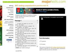 In this reading comprehension worksheet, students read a passage by D.H. Lawrence and one by Henry James. Students have 15 minutes to answer the 13 questions in this SAT practice worksheet.