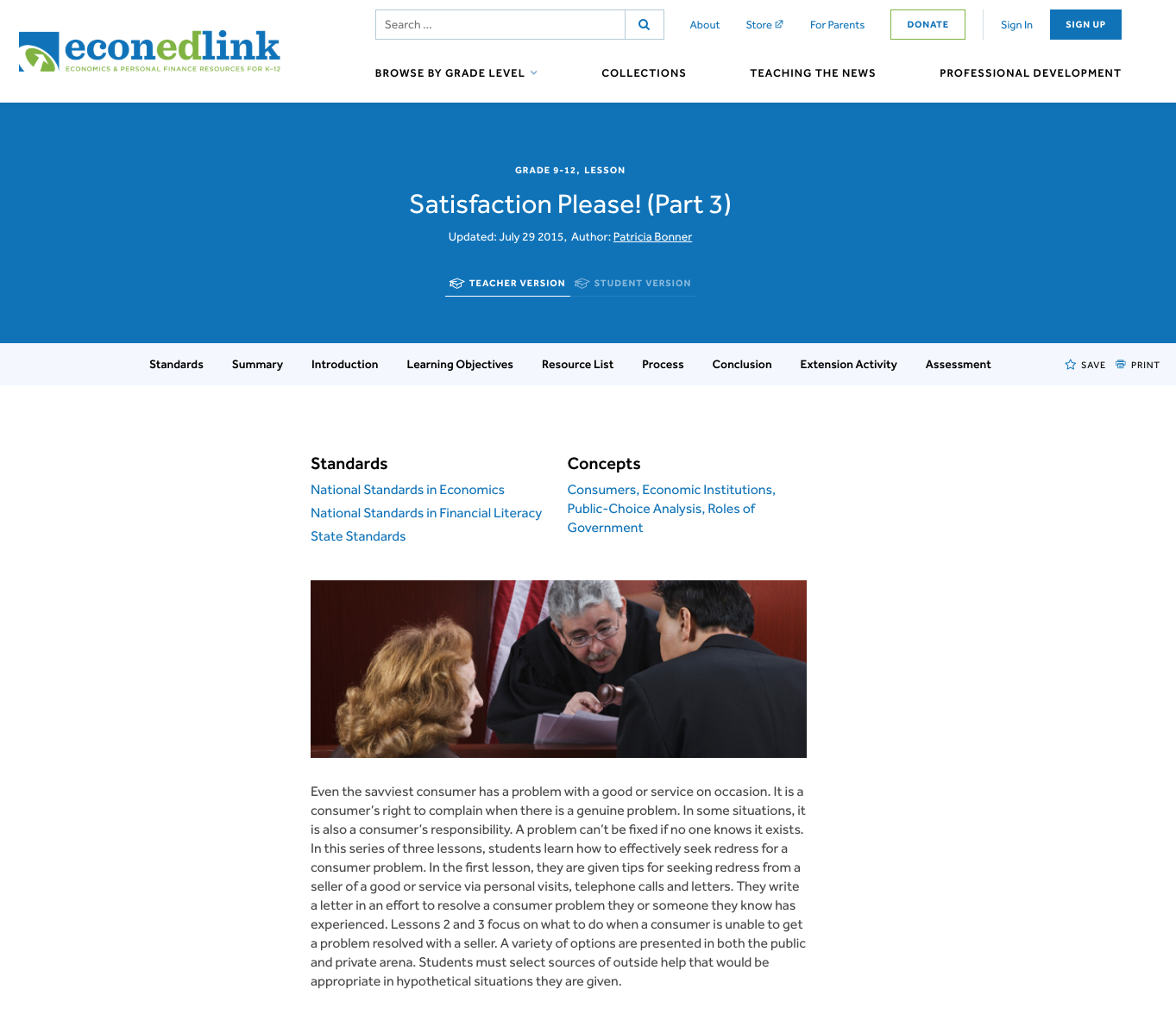Understanding the US government's role proves very important in the American economy, especially for consumers. Scholars learn about how varying government agencies help them when facing an issue. The third and final resource in the series tackles the topic with readings, class discussion, simulation through a phone call, viewing a consumer report, watching videos of court proceedings, and even researching organizations by filling out a flow chart.