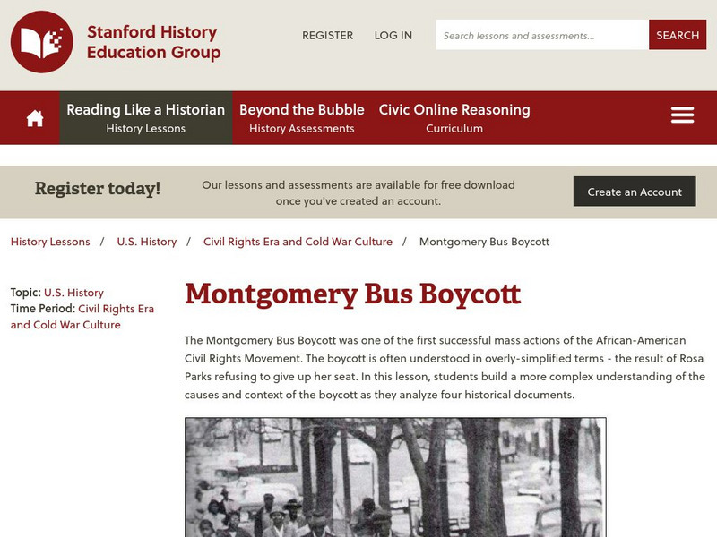 [Free Registration/Login Required] After reviewing four documents, learners will consider the deeper meaning behind the bus boycott while studying the Civil Rights Movement in the United States.