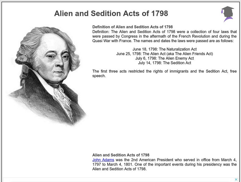 Provides a summary and interesting facts about the Alien and Sedition Acts that were laws relating to the rights of immigrants and free speech.