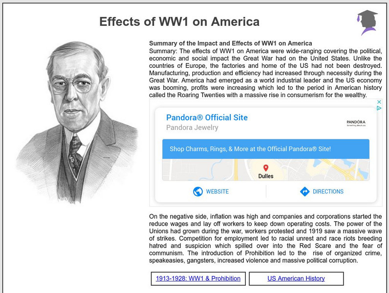 Overview and detailed facts about the social and economic impact of WW1 on America.