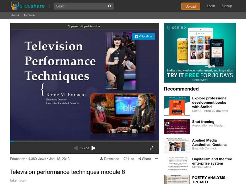 This Slide Share: Television Performance Techniques Module 6 ppt also includes: