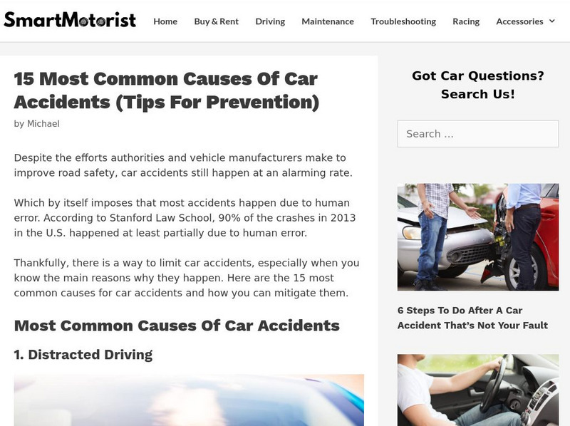 There are four factors that "Contribute to the vast majority of collisions." This detailed website discusses these: "Equipment Failure," "Roadway Design," "Poor Roadway Maintenance," and "Driver Behavior."
