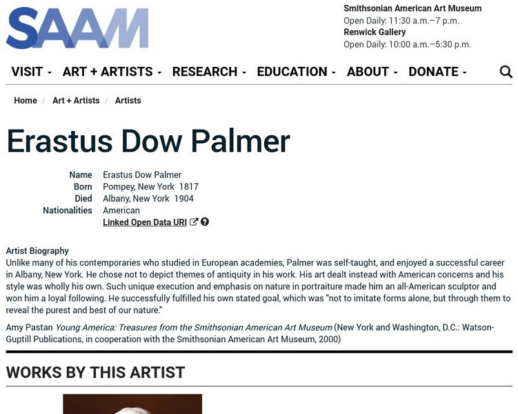 As part of the Smithsonian Art Museum's database of artists, Erastus Dow Palmer is described here along with information on his contributions to art through portraiture sculpture.