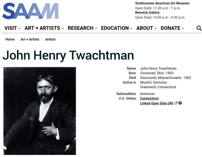John Henry Twachtman is profiled at this site in a format that begins with a brief biographical sketch of his life. His works are then listed by appearance in the museum's database. Each work is presented in thumbnail format with brief information including title of work and date of creation.