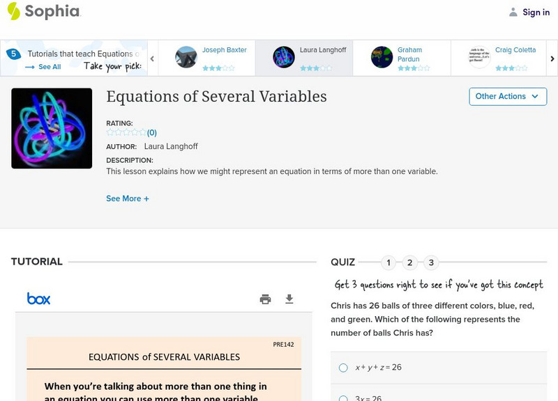 This Sophia: Equations of Several Variables: Lesson 2 ppt also includes: