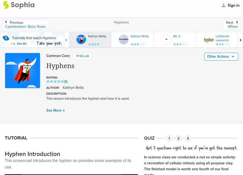 This screencast provides the rules for using hyphens and links to other resources with more examples of hyphen use. Real Player is required.