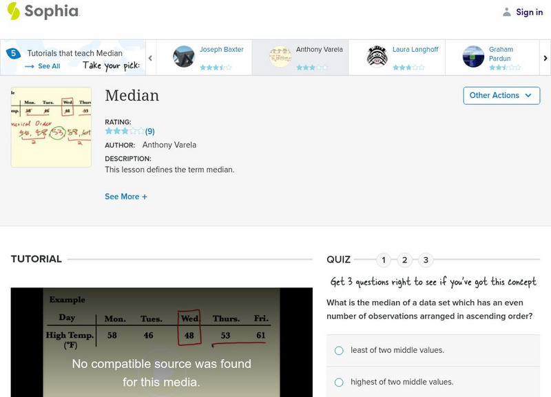 This lesson defines the term median. It is 2 of 14 in the series titled "Median."