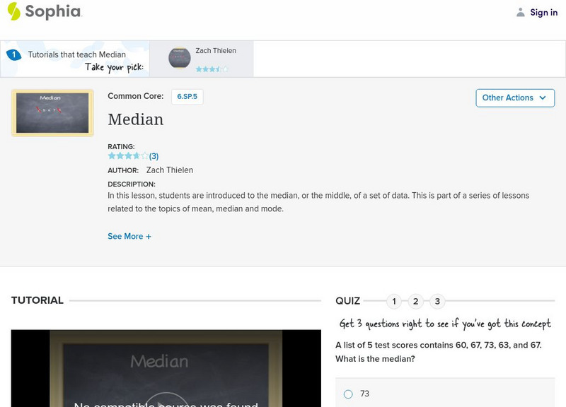 In this lesson, students are introduced to the median, or the middle, of a set of data. This is part of a series of lessons related to the topics of mean, median and mode. It is 9 of 14 in the series titled "Median."