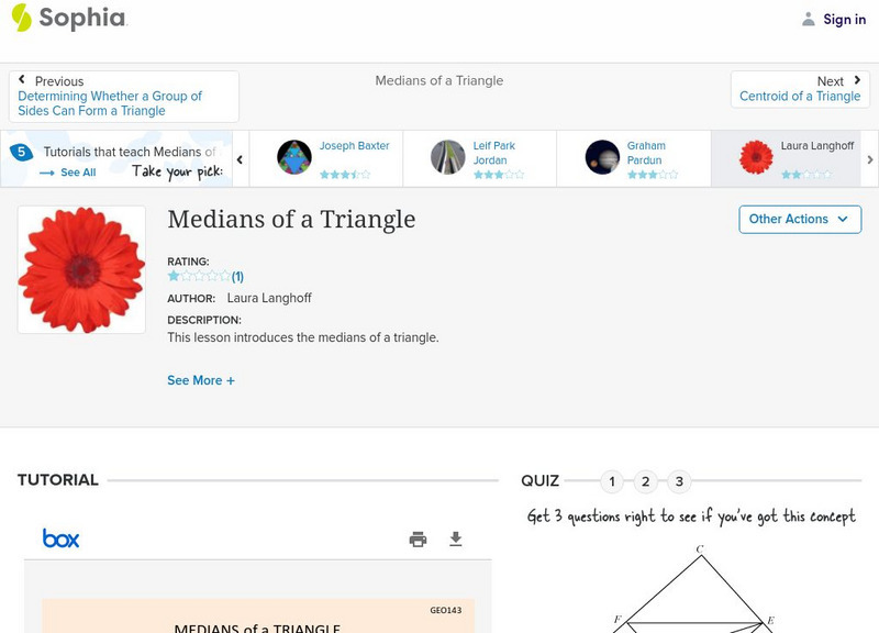 This Sophia: Medians of a Triangle: Lesson 5 ppt also includes: