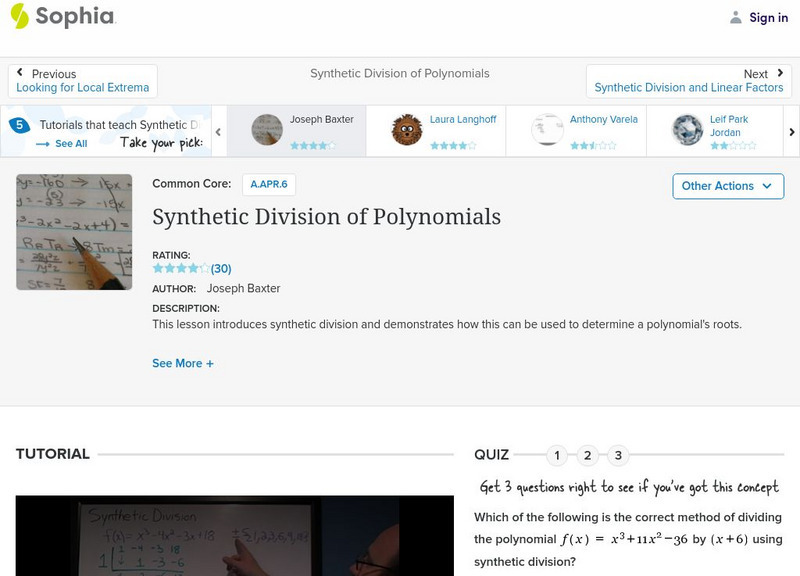 Synthetic division is investigated in this video lesson. The tutorial provides a detailed example demonstrating how to find the real roots of a function.