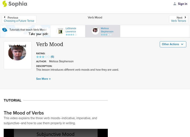 This video lesson focuses on verb moods; there are three verb moods: indicative, imperative, and subjunctive. It explains each individually, discusses the verb types, articulates the tenses used for each mood, and provides examples of each mood in context. The subjunctive mood is explained the most thoroughly among all presented. [7:10]